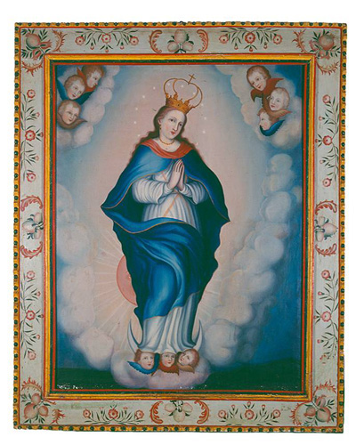 Coronación de La Virgen. Anónimo de Quíbor. c. 1775. Oleo sobre madera. Perteneció a Sor María Simona Yépez.
